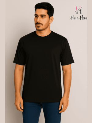 Mens Round Neck Cotton T-shirt (Black)