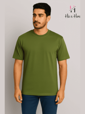Mens Round Neck Cotton T-shirt (Olive Green)