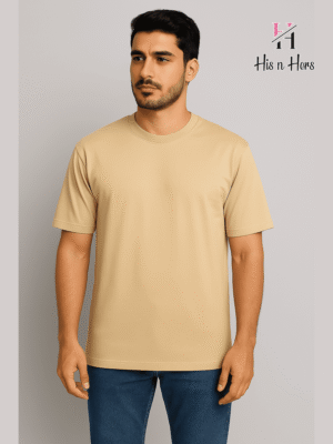 Mens Round Neck Cotton T-shirt (Biscuit)