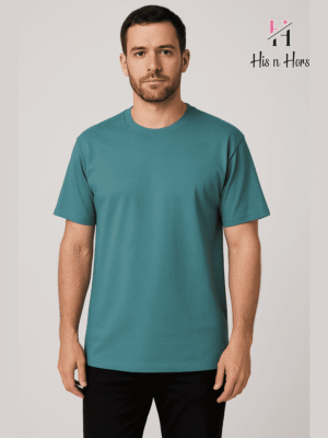 Mens Round Neck Cotton T-shirt (Aqua)