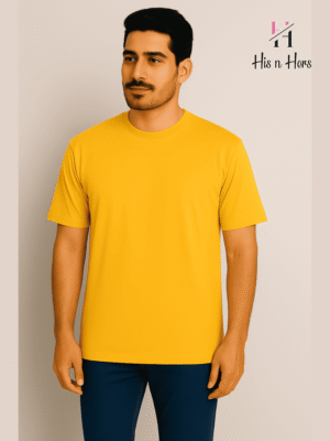Mens Round Neck Cotton T-shirt (Golden Yellow)