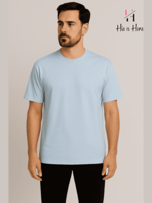 Mens Round Neck Cotton Tshirt (Sky Blue)